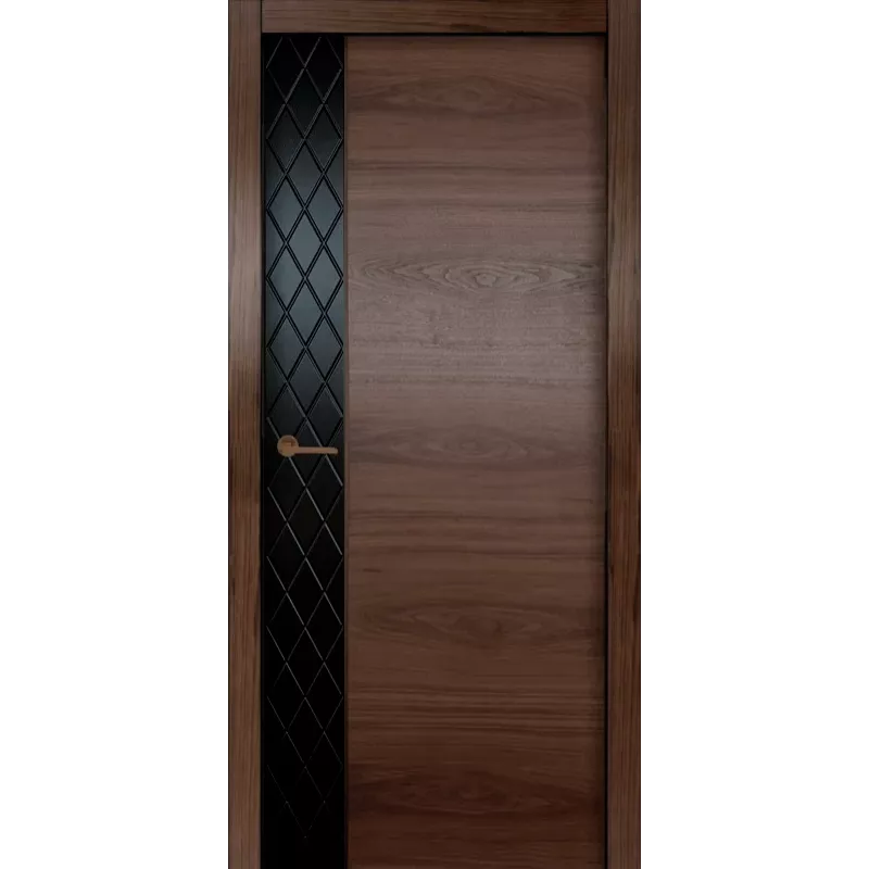 Теги: Дверь, межкомнатная, НОМА, глухая, шпон, американский орех, RAL 9005, вставка бронза