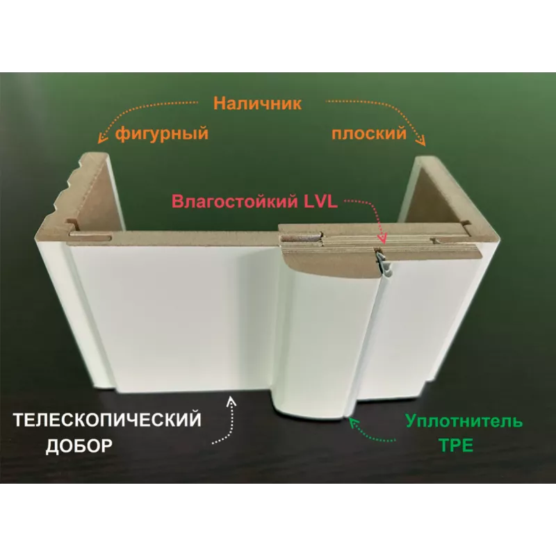 - Монтаж наличников и доборов без дополнительных видимых крепежей (в паз-гребень с обеих сторон) позволяет получить отличные эстетические свойства обрамления дверного проема