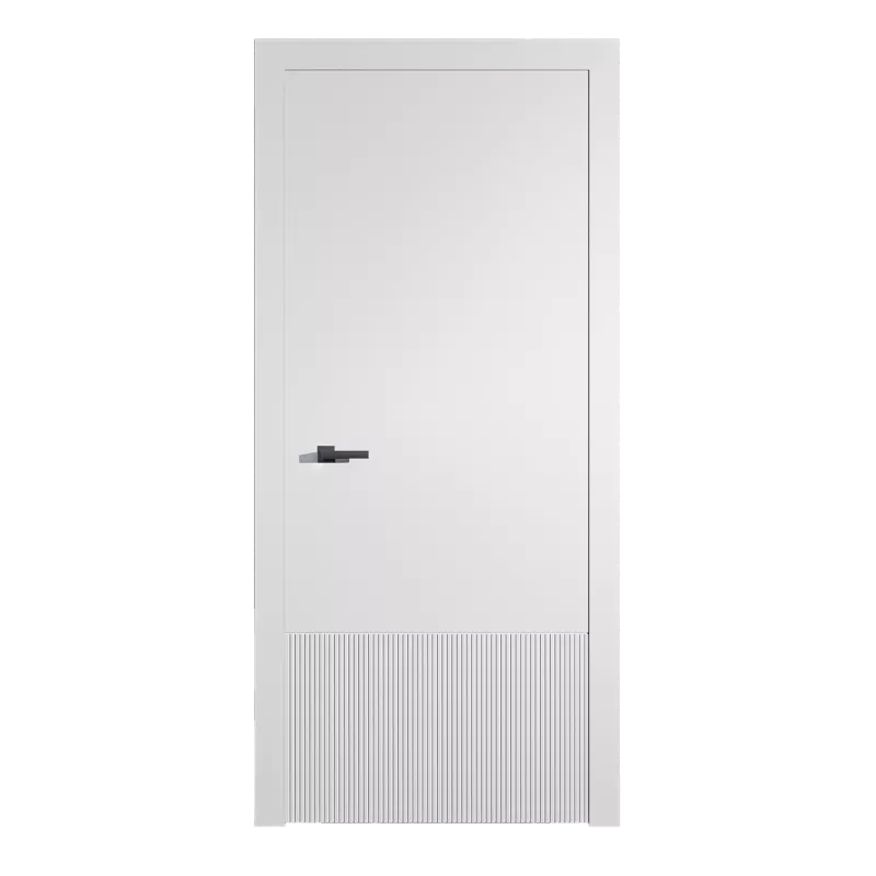 Каркас дверного полотна изготовлен из бессучкового массива сосны. Во избежание температурных деформаций все детали облицовываются с 2х сторон монолитной плитой МДФ (древесноволокнистая плита), что позволяет дереву дышать, не деформируя дверное полотно. Рисунок на полотне выполнен вертикальной фрезеровкой.