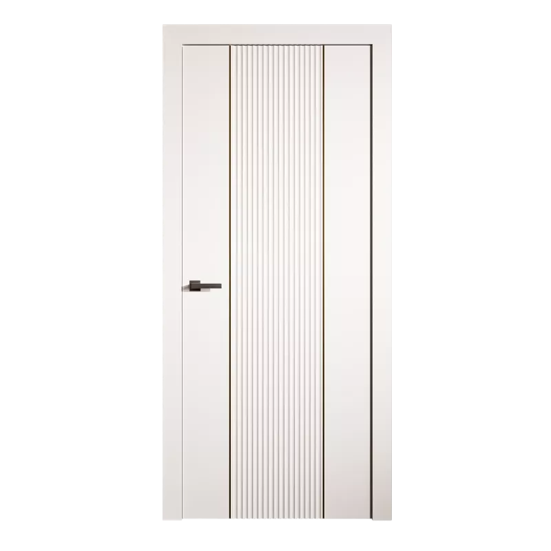 Каркас дверного полотна изготовлен из бессучкового массива сосны. Во избежание температурных деформаций все детали облицовываются с 2х сторон монолитной плитой МДФ (древесноволокнистая плита), что позволяет дереву дышать, не деформируя дверное полотно. Рисунок на полотне выполнен вертикальной фрезеровкой и моддингом.