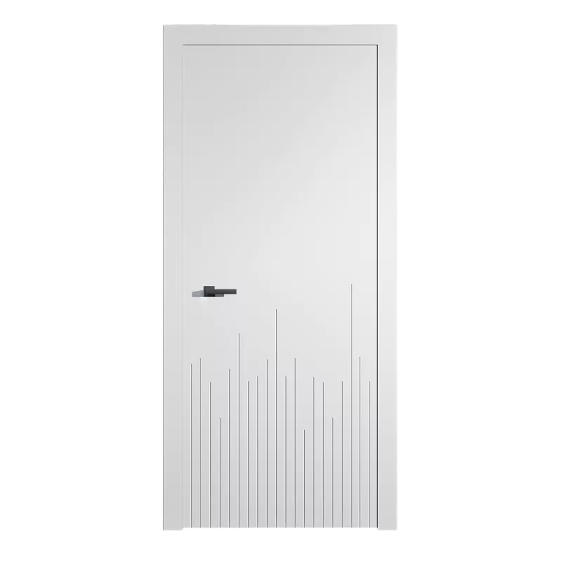 Каркас дверного полотна изготовлен из бессучкового массива сосны. Во избежание температурных деформаций все детали облицовываются с 2х сторон монолитной плитой МДФ (древесноволокнистая плита), что позволяет дереву дышать, не деформируя дверное полотно. Рисунок на полотне выполнен вертикальной фрезеровкой.