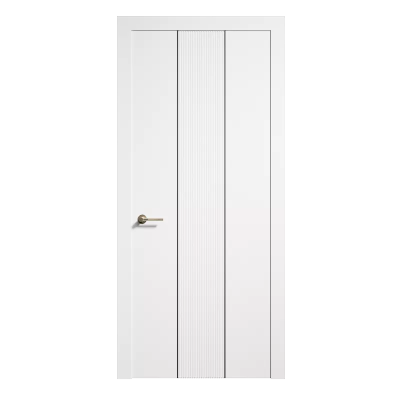 Каркас дверного полотна изготовлен из бессучкового массива сосны. Во избежание температурных деформаций все детали облицовываются с 2х сторон монолитной плитой МДФ (древесноволокнистая плита), что позволяет дереву дышать, не деформируя дверное полотно. Рисунок на полотне выполнен вертикальной фрезеровкой и моддингом. Цвет молдинга: черный, серебро, золото, антик, шампань.