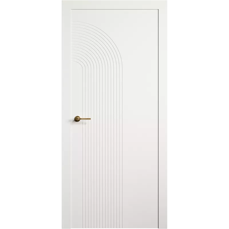 Каркас дверного полотна изготовлен из бессучкового массива сосны. Во избежание температурных деформаций все детали облицовываются с 2х сторон монолитной плитой МДФ (древесноволокнистая плита), что позволяет дереву дышать, не деформируя дверное полотно. Рисунок на полотне выполнен вертикальной фрезеровкой.