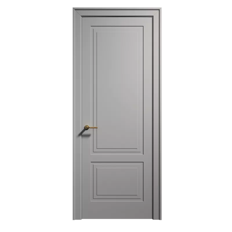 Каркас дверного полотна изготовлен из бессучкового массива сосны. Во избежание температурных деформаций все детали облицовываются с 2х сторон монолитной плитой МДФ (древесноволокнистая плита), что позволяет дереву дышать, не деформируя дверное полотно. Фрезеровка на полотне создает эффект филенок.