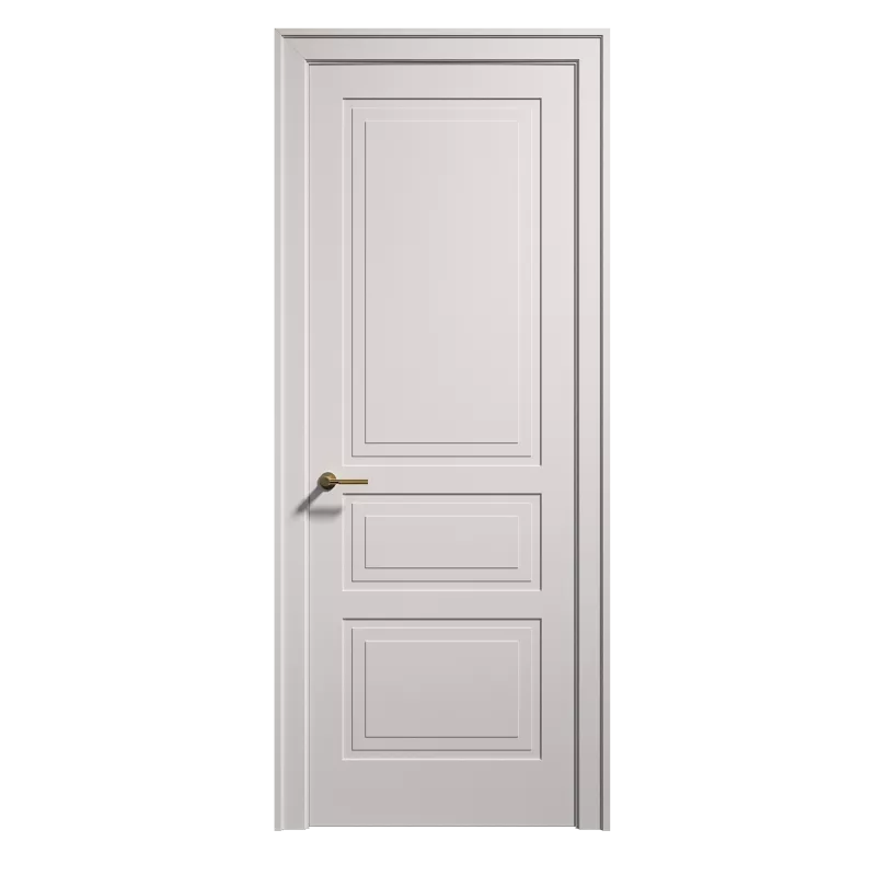 Каркас дверного полотна изготовлен из бессучкового массива сосны. Во избежание температурных деформаций все детали облицовываются с 2х сторон монолитной плитой МДФ (древесноволокнистая плита), что позволяет дереву дышать, не деформируя дверное полотно. Фрезеровка на полотне создает эффект филенок.