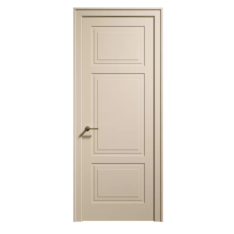 Каркас дверного полотна изготовлен из бессучкового массива сосны. Во избежание температурных деформаций все детали облицовываются с 2х сторон монолитной плитой МДФ (древесноволокнистая плита), что позволяет дереву дышать, не деформируя дверное полотно. Фрезеровка на полотне создает эффект филенок.