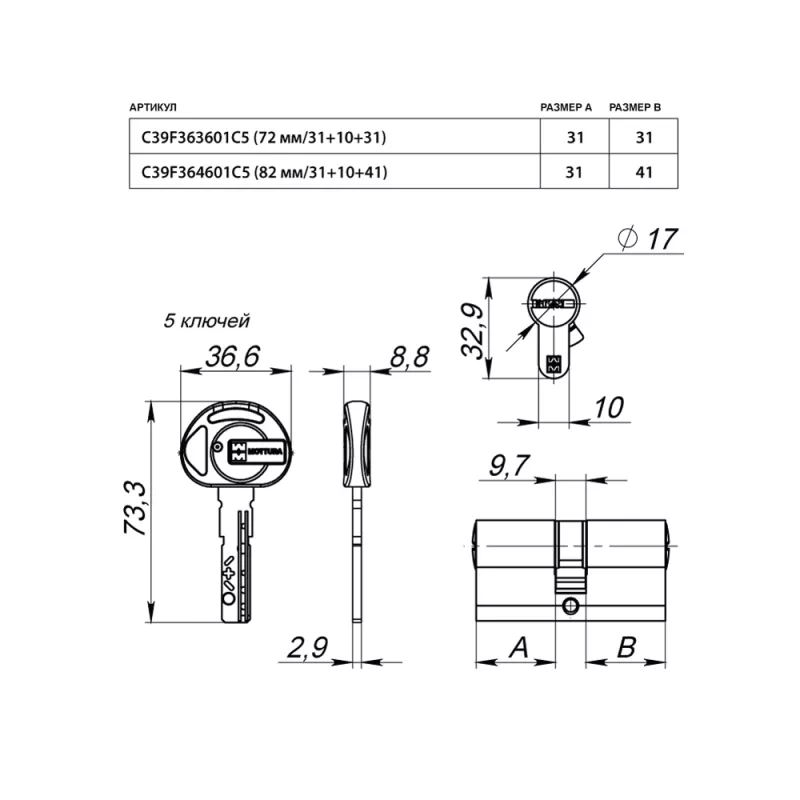 | Количество ключей | 5 |