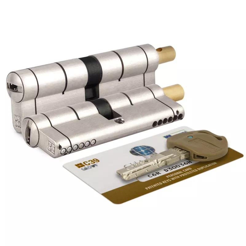 Цилиндровый механизм под вертушку C39F364601C5 серии CHAMPIONS 39 имеет запатентованный магнитный пин. Штифты, пины и заглушки выполнены из твердых материалов, благодаря чему корпус и ротор имеют защиту от высверливания. Штифты имеют специальную форму, обеспечивающую защиту от отмычек. Боковые и верхние пины блокируют цилиндр в случае попытки вскрытия методом бампинга или отмычками. Ключи с цилиндрами CHAMPIONS 39 поставляются с зарегистрированной карточкой владельца. Изготовление дубликатов ключей возможно только при предъявлении карты владельца. Размер цилиндра: 82 мм (31+10+41). Цвет: матовый никель.