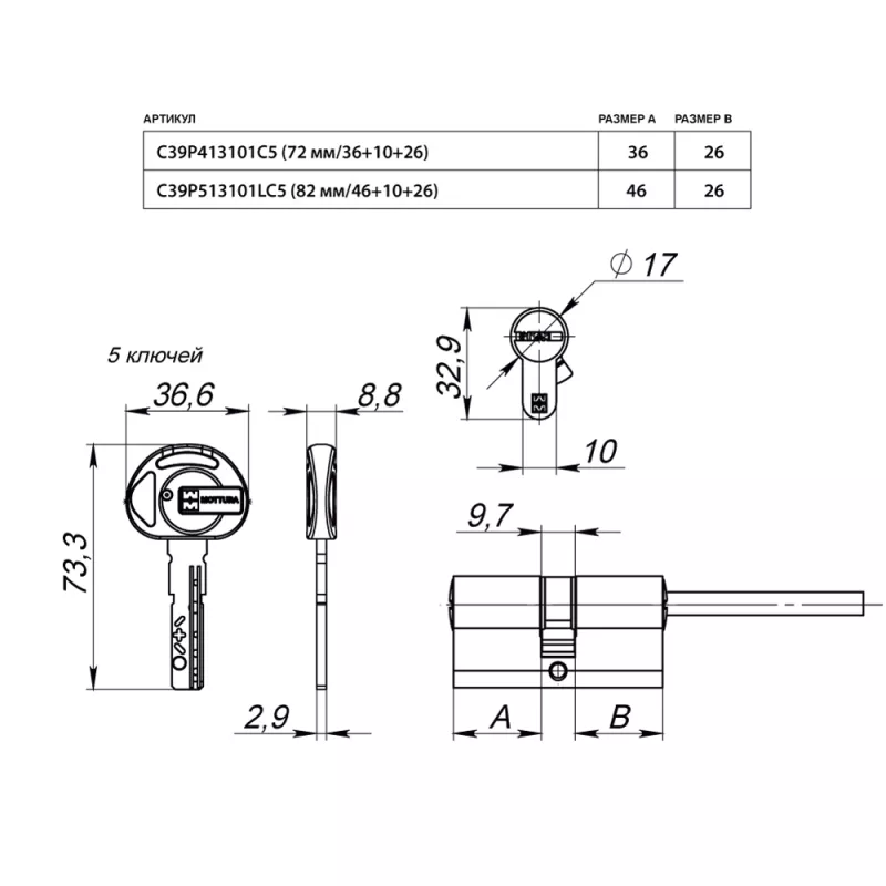 | Количество ключей | 5 |