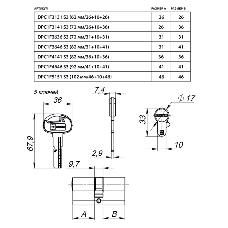 | Количество ключей | 6 |