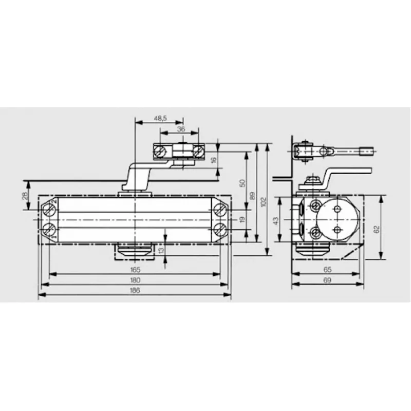 Доводчик Dorma (Дорма) дверной TS 77 EN4, с рычажной тягой, серый