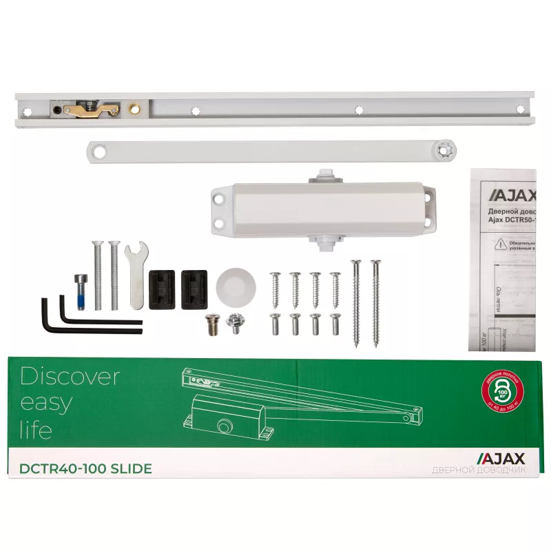 Доводчик Ajax (Аякс) дверной DCTR40-100 slide WH белый