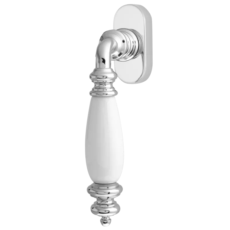 ручки оконные Оконная ручка 0473 Полированный хром + керамика белая.