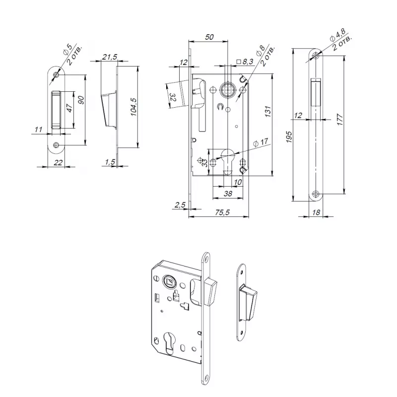 | Тип защелки | с выпадающим ригелем, Универсальная |