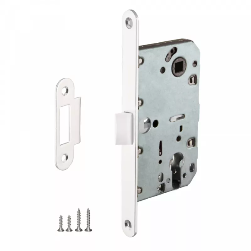 Корпус выполнен из стали, лицевая планка имеет надежное покрытие. Легкая перестановка язычка защелки для дверей левого / правого открывания. Большой ресурс работы позволяет рекомендовать их для установки на объекты с высокой проходимостью. Ответная планка и крепеж входит в комплект. Цвет : белый