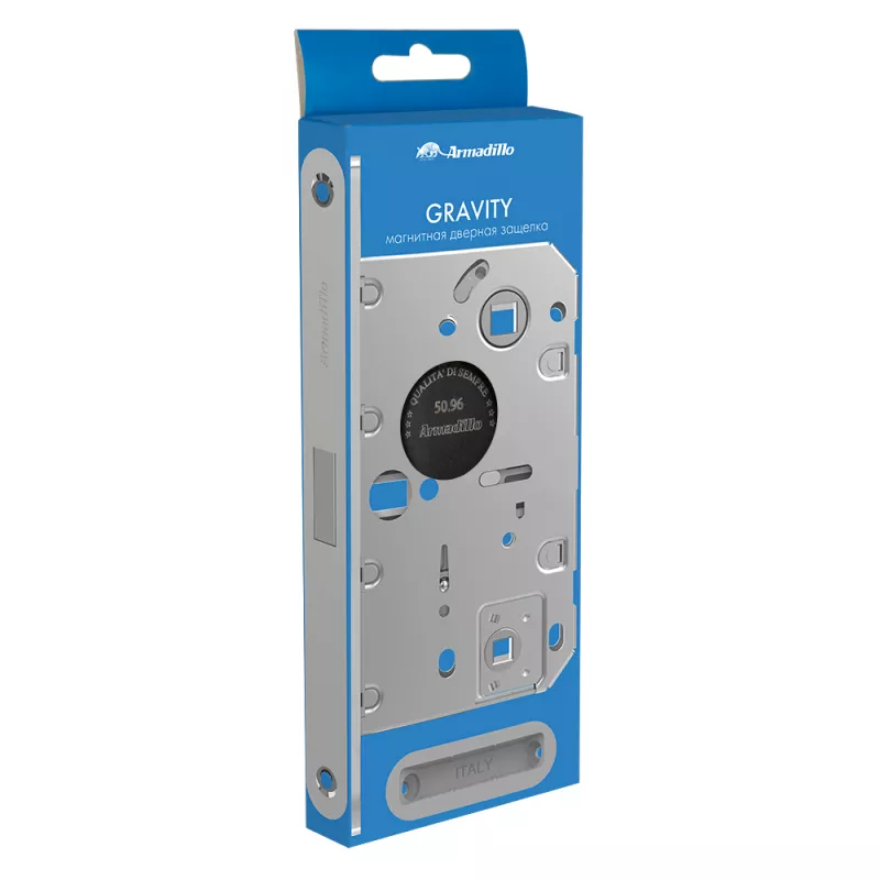 Магнитные защёлки Armadillo GRAVITY - продукт совместной работы российских и итальянских производителей. Бесшумность работы достигается за счет магнитного механизма, срабатывающего только при закрывании. В остальное время защёлка утоплена в полотно. Такая конструкция делает торец более эстетичным и продлевает срок службы самого изделия. Оригинальные итальянские неодимовые магниты препятствуют преждевременному размагничиванию. Полностью гальванизированный корпус защищает от образования коррозии. Уникальный метод полировки лицевой планки гарантирует идеально ровные торцы. Форма ответной планки со скошенными краями обеспечивает отличное сцепление и плавное закрывание. Доступны два размера планки: 190 и 196 мм Саморезы в цвет планки подчеркивают эстетичный вид. Предназначены для установки на деревянные, межкомнатные и сантехнические двери левого и правого открывания с толщиной полотна от 35 мм. Защелки прошли испытания и имеют высший 4 класс надежности (250 000 циклов открывания/закрывания) Гарантия 10 лет.