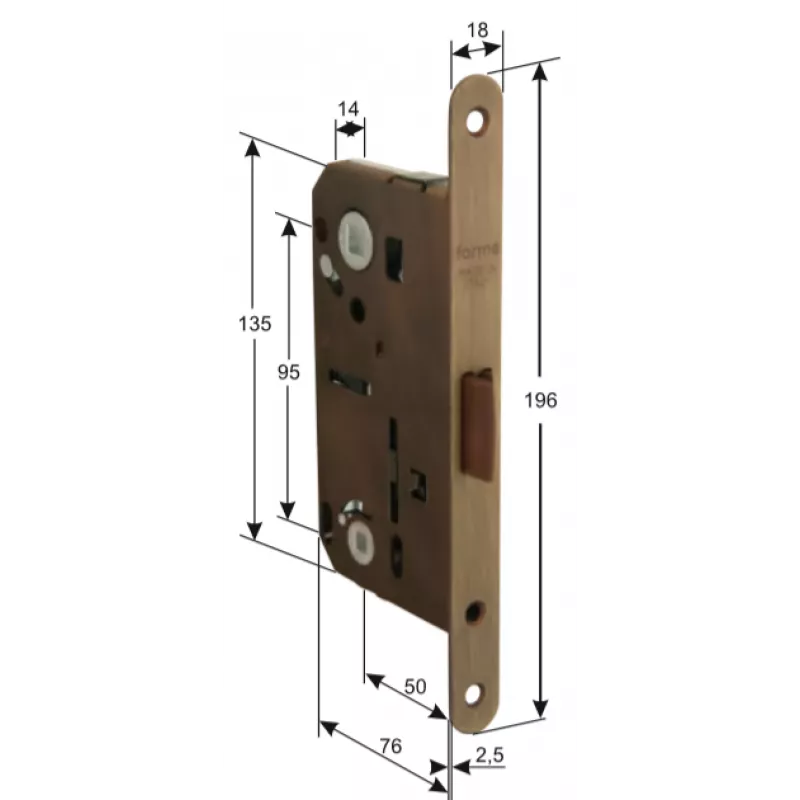 Механизмы Замок врезной MECCANICO F120.12.33 Wc-95mm сантехнический с ответной планкой и шурупами, МАТОВАЯ БРОНЗА.