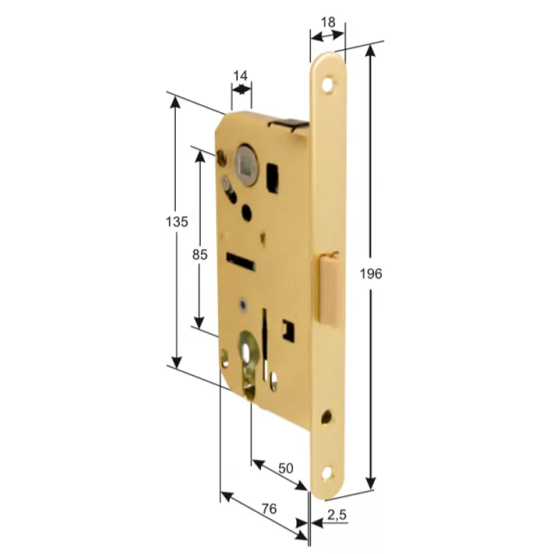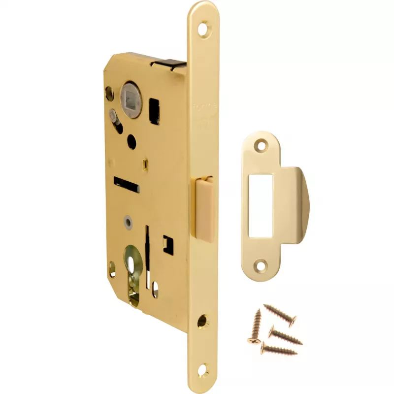 Механизмы Замок врезной MECCANICO F120.13.02 Cyl цилиндрический с ответной планкой и шурупами, ПОЛИРОВАННАЯ ЛАТУНЬ.