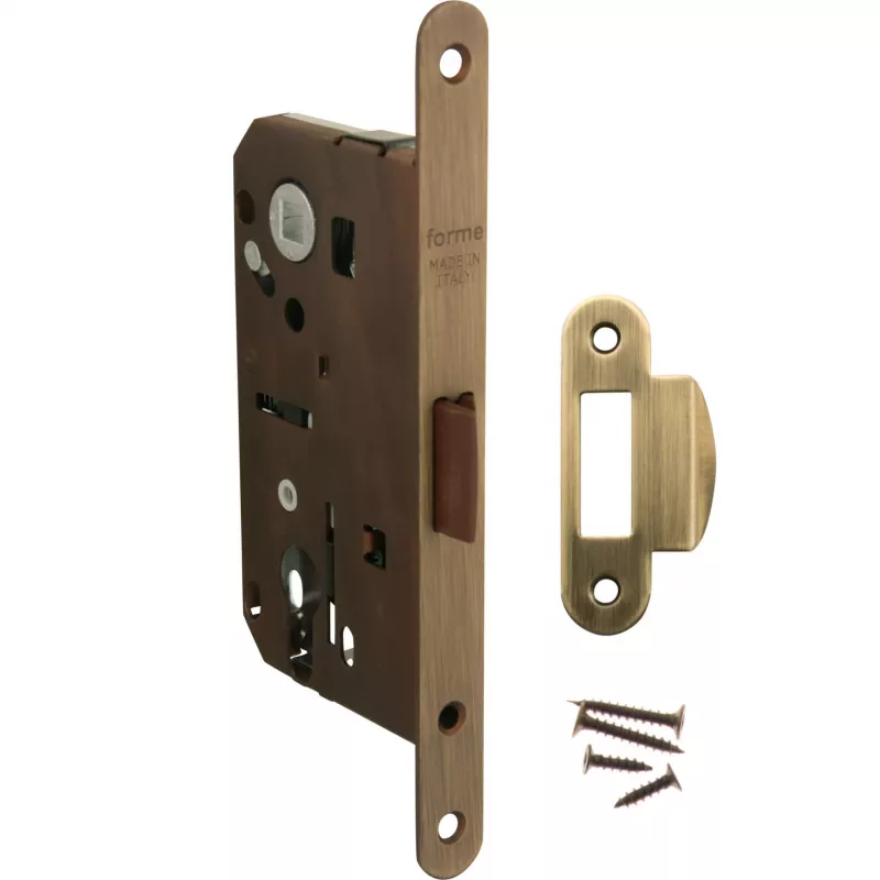 Механизмы Замок врезной MECCANICO F120.13.33 Cyl цилиндрический с ответной планкой и шурупами, МАТОВАЯ БРОНЗА.