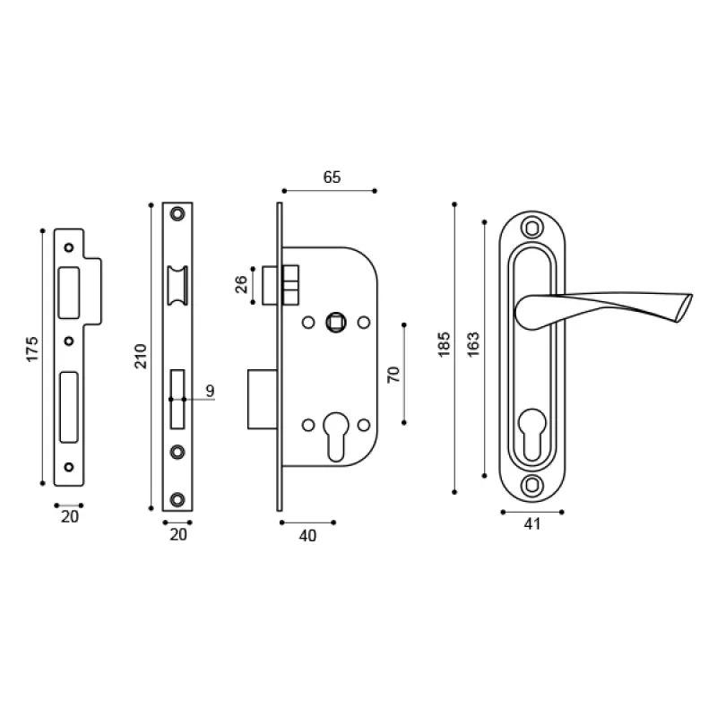Комплектация : корпус замка, ручки на планке, цилиндр, квадрат под ручки, крепеж, паспорт изделия, гарантийная карта.