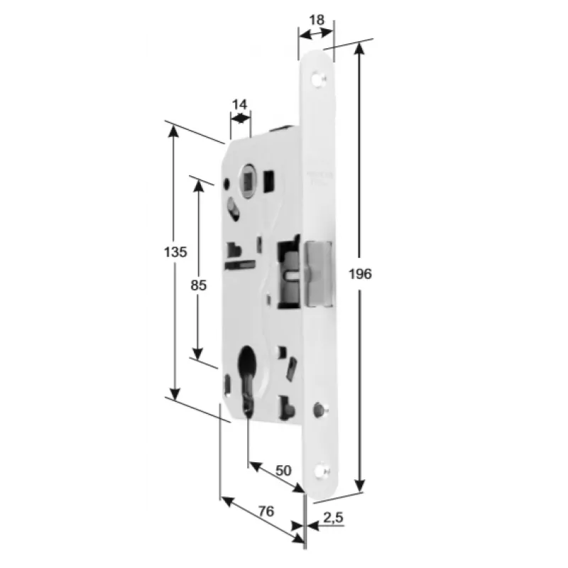 | Бэксет (удаление ключевого отверстия) | 50 мм |