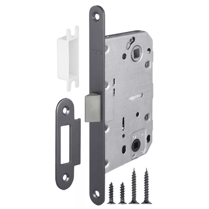 Дверная защелка с пластиковым механизмом Fuaro P96WC серии PLASTIC изготовлена в соответствии с требованиями ГОСТ 5089-2003. Предназначена для установки в деревянные межкомнатные и сантехнические двери. Легкая смена направления язычка защелки, подходит для дверей левого и правого открывания. Корпус выполнен из стали с надежным гальваническим покрытием. Ударопрочный пластиковый механизм обеспечивает бесшумность работы защелки. Защелка P96WC с усиленным блоком пружин имеет высший 4 класс надежности (250 000 циклов открывания/закрывания). Отверстия под стяжные винты находятся на расстоянии 38 мм. Размер бэксета - 50 мм. Размер межосевого расстояния - 96 мм. Возможна установка дверных ручек на стяжные винты для более прочного крепления. Цвет: графит. В комплектацию входят: ответная планка и крепежная фурнитура в цвет изделия.