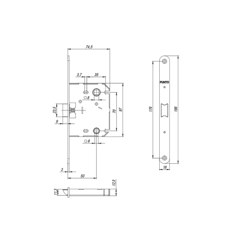 Защёлка врезная с пластиковым механизмом PL70X-R20 предназаначена для установки под фрезерную врезку. Бэксет: 50мм. Межосевое расстояние: 70 мм. Длина лицевой планки: 196 мм. Комплектация техническая: защелка с комплектом крепежа, пластиковым вкладышем, но без ответной планки, технической документации. Упаковка: пакет.