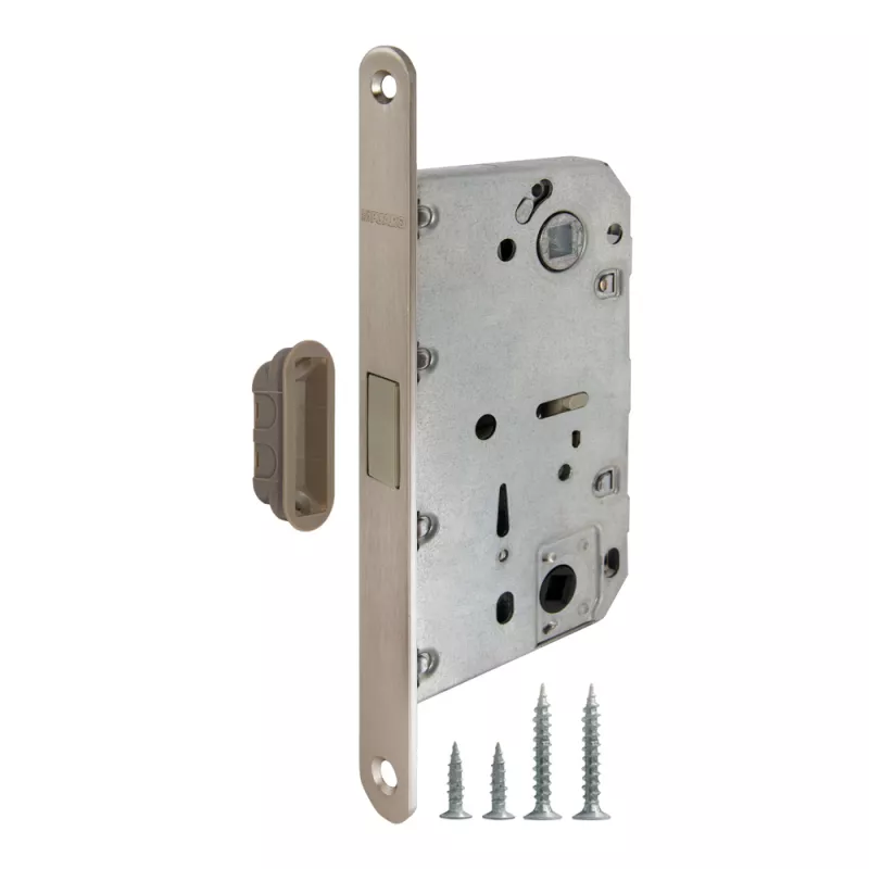 Бесшумная магнитная защелка Fuaro M96WC серии MAGNET изготовлена в соответствии с требованиями ГОСТ 5089-2011. Предназначена для установки в межкомнатные и сантехнические двери. Корпус выполнен из стали с надежным гальваническим покрытием. Магнитный механизм обеспечивает бесшумность работы защелки. Защелка M96WC с усиленным блоком пружин имеет высший 4 класс надежности (250 000 циклов открывания/закрывания). Отверстия под стяжные винты находятся на расстоянии 38 мм. Размер бэксета - 50 мм. Размер межосевого расстояния - 96 мм. Возможна установка дверных ручек на стяжные винты для более прочного крепления. В комплектацию входят: ответная планка и крепежная фурнитура в цвет изделия.