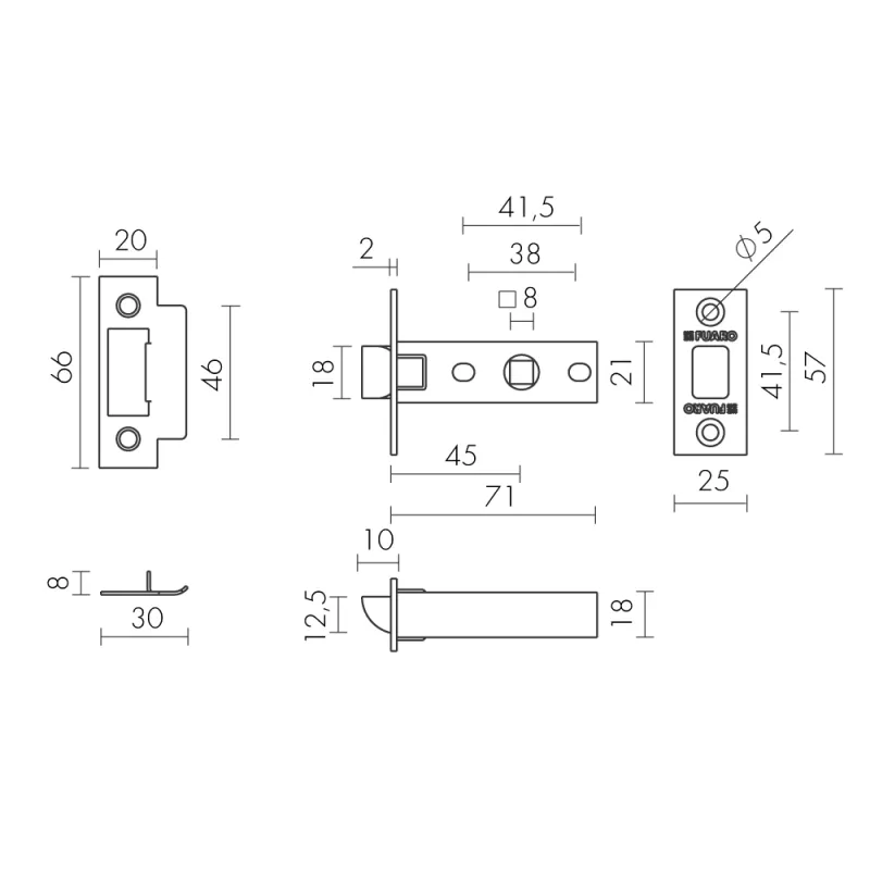 Защелка Fuaro (Фуаро) врезная METF12-45-25 (F12-45-25) BL черный