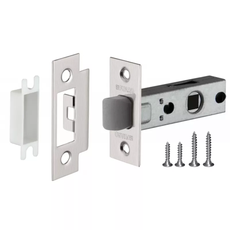 Дверная защелка с пластиковым механизмом Fuaro P12 серии PLASTIC изготовлена в соответствии с требованиями ГОСТ 5089-2003. Предназначена для установки в деревянные межкомнатные двери. Корпус выполнен из стали с надежным гальваническим покрытием. Защелка легко устанавливается, подходит для дверей левого и правого открывания. Ударопрочный пластиковый механизм обеспечивает бесшумность работы защелки. Защелка P12 с усиленной пружиной имеет высший 4 класс надежности (250 000 циклов открывания/закрывания). Отверстия под стяжные винты находятся на расстоянии 37-41 мм. Размер бэксета - 45 мм. Возможна установка дверных ручек на стяжные винты для более прочного крепления. Цвет: матовый никель. В комплектацию входят: ответная планка с декоративной вставкой и крепежная фурнитура в цвет изделия.