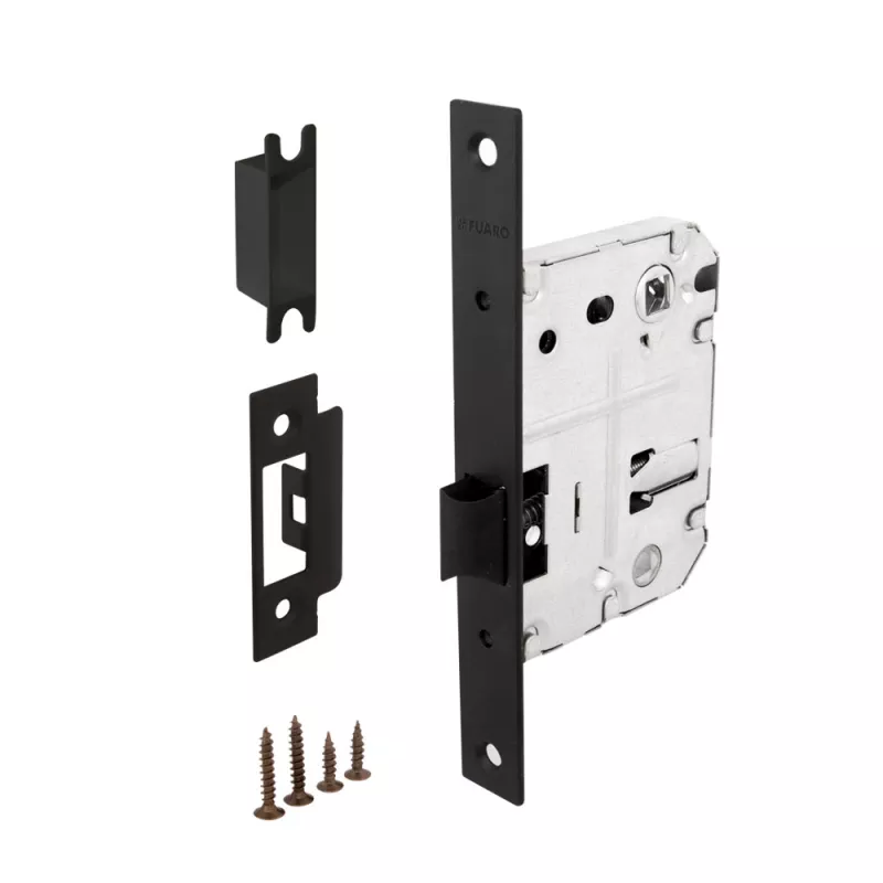 Дверная защелка с пластиковым механизмом Fuaro P72 серии PLASTIC изготовлена в соответствии с требованиями ГОСТ 5089-2003. Предназначена для установки в деревянные межкомнатные двери. Легкая смена направления язычка защелки, подходит для дверей левого и правого открывания. Корпус выполнен из стали с надежным гальваническим покрытием. Ударопрочный пластиковый механизм обеспечивает бесшумность работы защелки. Защелка P72 с усиленным блоком пружин имеет высший 4 класс надежности (250 000 циклов открывания/закрывания). Отверстия под стяжные винты находятся на расстоянии 35-41 мм. Размер бэксета - 50 мм. Размер межосевого расстояния - 70 мм. Возможна установка дверных ручек на стяжные винты для более прочного крепления. Цвет: черный. В комплектацию входят: ответная планка с декоративной вставкой и крепежная фурнитура в цвет изделия.