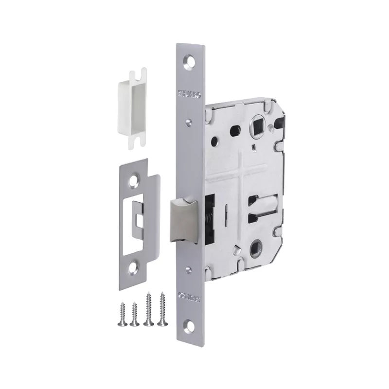 Дверная защелка с пластиковым механизмом Fuaro P72 серии PLASTIC изготовлена в соответствии с требованиями ГОСТ 5089-2003. Предназначена для установки в деревянные межкомнатные двери. Легкая смена направления язычка защелки, подходит для дверей левого и правого открывания. Корпус выполнен из стали с надежным гальваническим покрытием. Ударопрочный пластиковый механизм обеспечивает бесшумность работы защелки. Защелка P72 с усиленным блоком пружин имеет высший 4 класс надежности (250 000 циклов открывания/закрывания). Отверстия под стяжные винты находятся на расстоянии 35-41 мм. Размер бэксета - 50 мм. Размер межосевого расстояния - 70 мм. Возможна установка дверных ручек на стяжные винты для более прочного крепления. Цвет: сатинированный хром. В комплектацию входят: ответная планка с декоративной вставкой и крепежная фурнитура в цвет изделия.