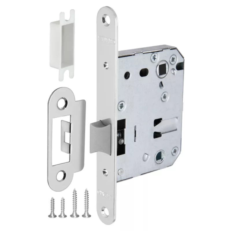 Дверная защелка с пластиковым механизмом Fuaro P82 серии PLASTIC изготовлена в соответствии с требованиями ГОСТ 5089-2003. Лицевая и ответная планка имеют форму удобную для установки с помощью фрезы. Предназначена для установки в деревянные межкомнатные двери. Легкая смена направления язычка защелки, подходит для дверей левого и правого открывания. Корпус выполнен из стали с надежным гальваническим покрытием. Ударопрочный пластиковый механизм обеспечивает бесшумность работы защелки. Защелка P82 с усиленным блоком пружин имеет высший 4 класс надежности (250 000 циклов открывания/закрывания). Отверстия под стяжные винты находятся на расстоянии 35-41 мм. Размер бэксета - 50 мм. Размер межосевого расстояния - 70 мм. Возможна установка дверных ручек на стяжные винты для более прочного крепления. Цвет: хром. В комплектацию входят: ответная планка с декоративной вставкой и крепежная фурнитура в цвет изделия.