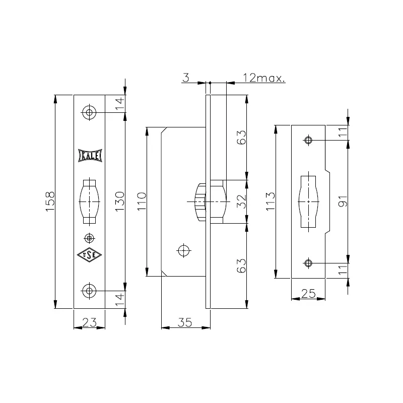 Защелка Kale kilit (Кале килит) врезная ролик 155/B (35 mm) (латунь)