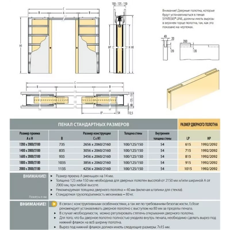 | Тип фурнитуры | Пенал для раздвижных дверей |