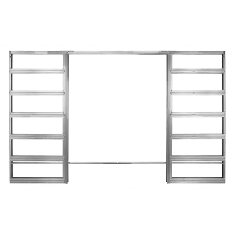 12 горизонтальных траверс из оцинкованной стали толщиной 0,7 мм, спрофилированы в виде перевернутого ласточкиного хвоста, с тем чтобы обеспечивать максимальное сопротивление боковым нагрузкам и сохранять неизменным дверной проем.
