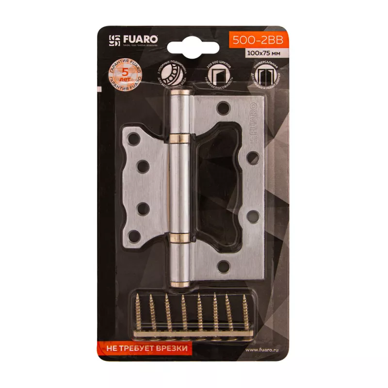 Теги: 39747, Петли накладные (карточные), FUARO, 500-2BB, белый жемчуг, Сталь, 100x51x2, 5 мм, 4690489030603