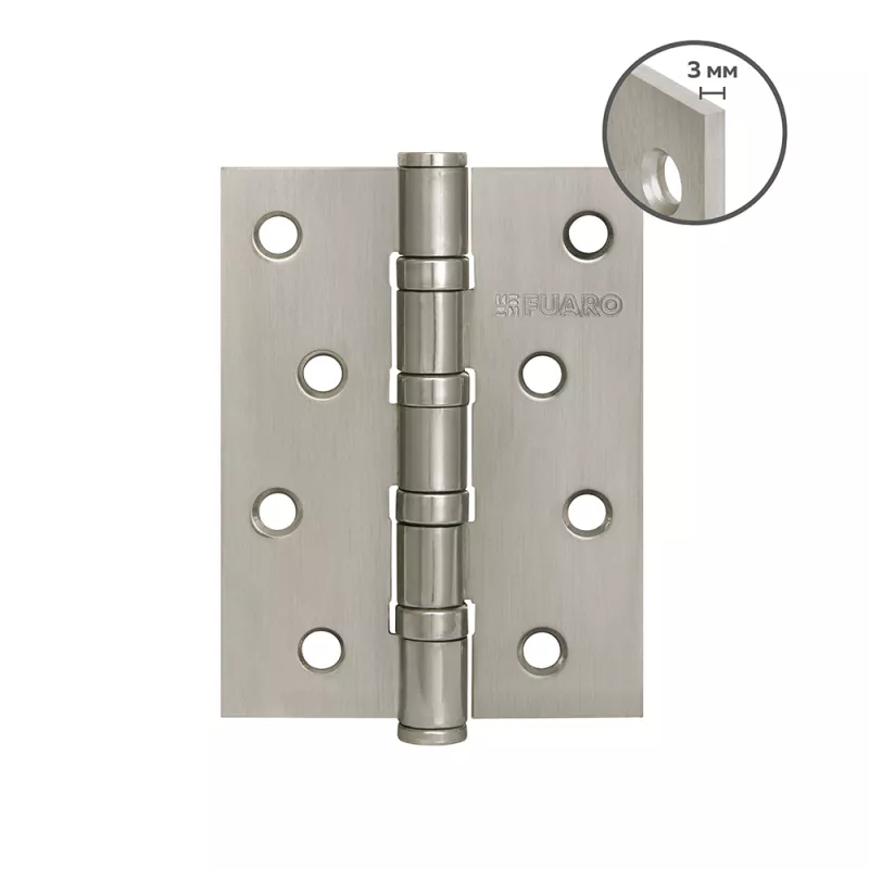 Теги: 46503, Петли накладные (карточные), FUARO, 4BB, матовый никель, Сталь, 100х75х3 мм, 4690489047236
