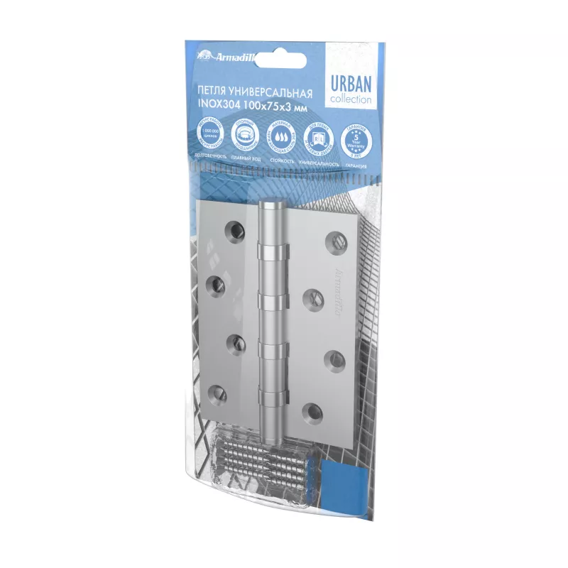 Коллекция петель URBAN пополнилась карточными прочными петлями из нержавеющей стали 304 пробы - это значит, что петли подходят для установки как на межкомнатные, так на уличные двери. Петли без колпачка с четырьмя стальными упорными шариковыми подшипниками, уменьшают стираемость и обеспечивают плавный ход петли, тем самым увеличивая срок службы. В самых востребованных цветах: итальянский тисненый, матовый и вороненый никель, черный, флорентийское золото, хром и бронза.