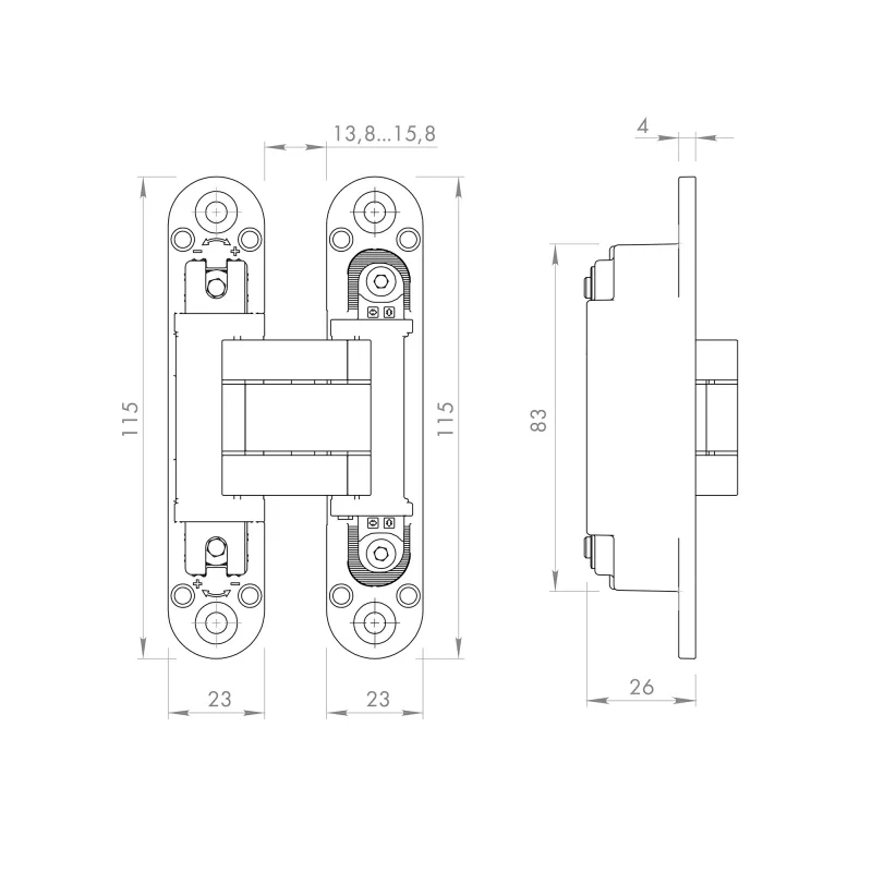 Скрытые петли Armadillo U3D3000 подходят для установки в деревянные межкомнатные двери, двери с алюминиевой кромкой, тонкие двери и двери с притвором U3D3000 - универсальные петли для дверей с левым и правым открыванием Петли скрытой установки U3D3000 предназначены для установки в межкомнатные двери толщиной от 35 мм и с уменьшенной толщиной коробки до 20,5 мм. Рассчитаны на нагрузку до 40 кг при установке двух петель. Невидимы на закрытой двери и обеспечивают угол открывания до 180 градусов. Бесшумны и плавны в работе за счёт нейлоновых вставок на подвижной части конструкции. Легко регулируются в трех плоскостях уже после завершения монтажа. Регулируются в трех плоскостях: по горизонтали ±1 мм, высоте ±2 мм и притвору -1,5\+2,5 мм Декоративные накладки входят в комплект. Соответствуют типоразмерам AGB ECLIPSE 3.0