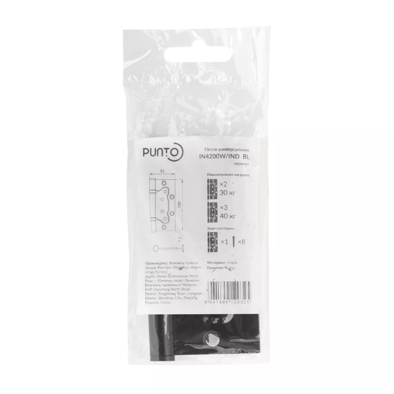 Петля Punto (Пунто) универсальная без врезки IN4200W/IND BL (тех.упаковка) черный