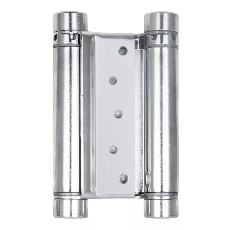 Петля двусторонняя (она же барная, пружинная, петля метро) применяется для деревянных дверей. Позволяет двери открываться в обе стороны, возвращает дверь в центральное положение (в створ).