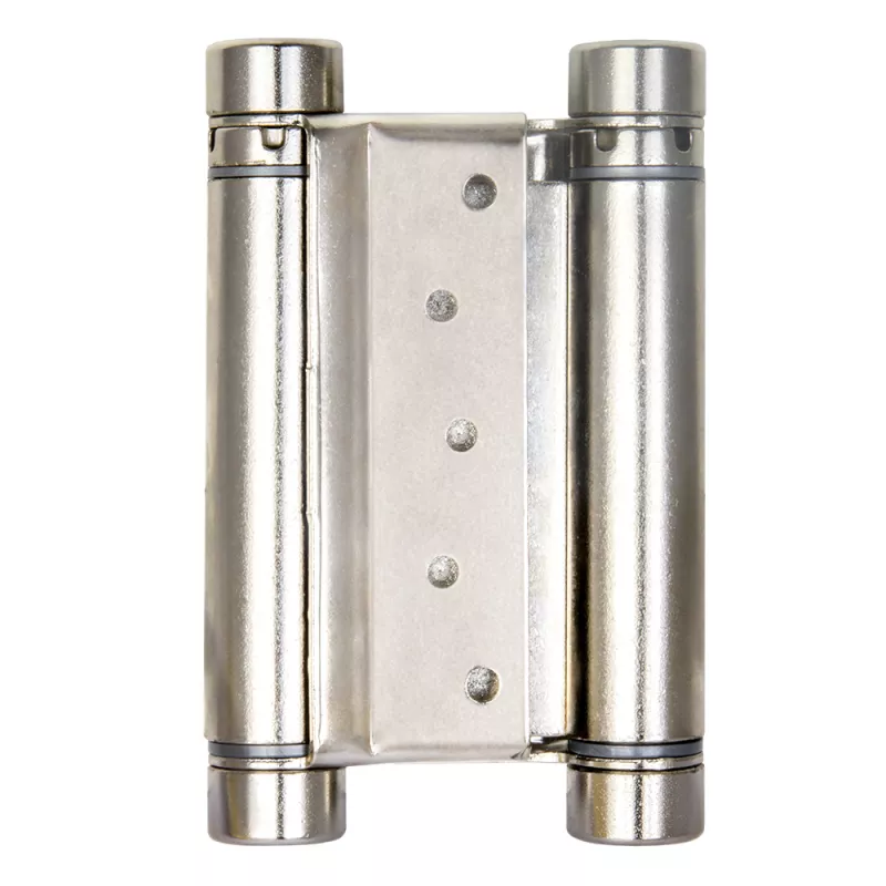 Петля двусторонняя (она же барная, пружинная, петля метро) применяется для деревянных дверей. Позволяет двери открываться в обе стороны, возвращает дверь в центральное положение (в створ).