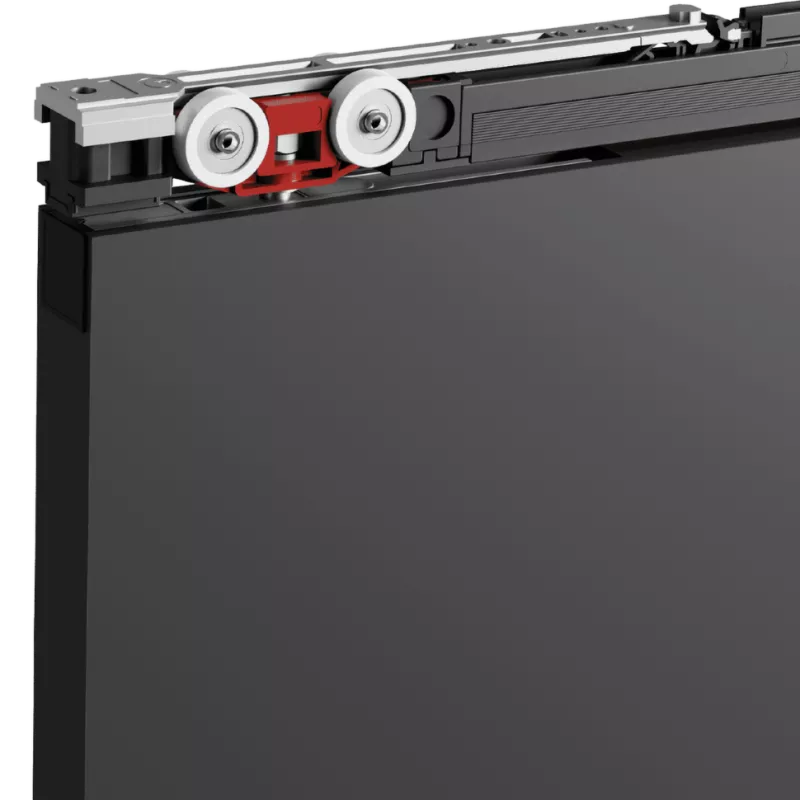 EVOLUTION спроектирована, чтобы быть полностью скрытой, включает вариант с потолочной рейкой. Инновационная система защиты от отскока обеспечивает стабильную и мягкую остановку двери.