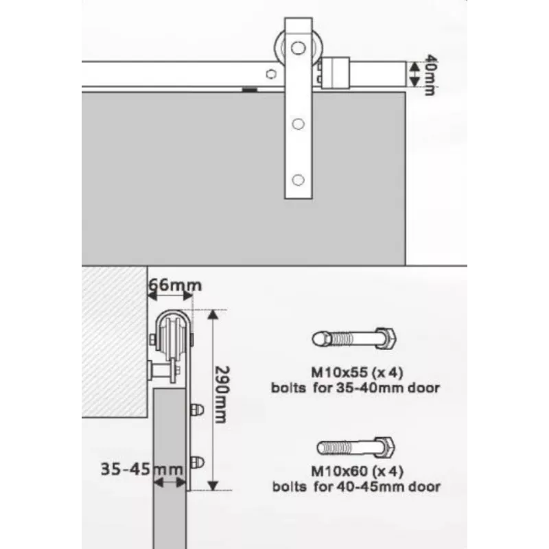 Направляющая с креплением к стене 2 метра,каретки 2 штуки (на одну дверь),стопора,нижний проводник