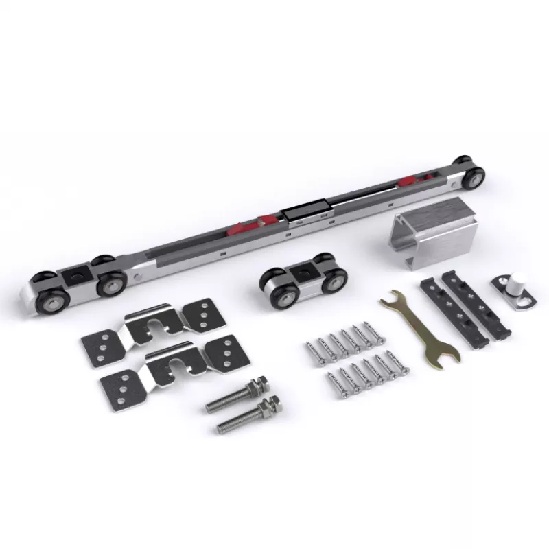 Комплект раздвижной системы с доводчиком "Corona" CR-187 для деревянной двери массой не более 80кг. В раздвижной системе CR-187 в одну из кареток уже встроен доводчик. В комплект входит: одна каретка (ролик) с доводчиком и вторая обычная, нижний стабилизатор, верхняя направляющая 2 метра, крепеж. Ролики изготовлены из прочного материала, колесики с влаго- и пыле- защищенными подшипниками, покрытыми износоустойчивым пластиком.