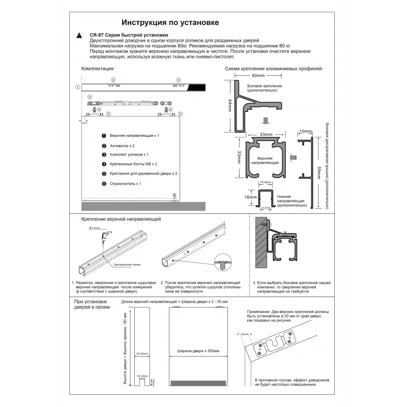 CORONA CR-187 Раздвижная система с двусторонним доводчиком для деревянных дверей 3000 mm