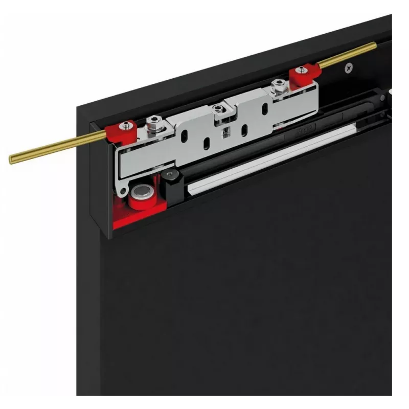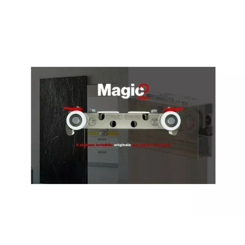 Magic2 - это инновационная система невидимых раздвижных дверей снаружи стены для деревянных и стеклянных дверей с мягким закрыванием. Продукт, сочетающий в себе магию архитектурного минимализма и плавность работы тщательно протестированной системы - сегодня в версии Magic2. Недавняя модернизация с использованием жидкостных амортизаторов делает его сегодня уникальным и неповторимым продуктом. Амортизаторы были сконструированы таким образом, чтобы быть независимыми от настенных распорных колес. Они подходят для установки в направляющую, что позволяет регулировать положение двери. Распорные колеса для стен, расположены на концах двери, чтобы защитить дверь от соприкосновения со стеной, когда поверхность стены не является плоской. Запатентованная система регулировки Magic2 интегрирует следующие настройки дверей: - миллиметровая регулировка расстояния от двери до стены. - миллиметровая регулировка параллельности двери по отношению к стене. Регулировка расстояния между дверями и параллельности стен предназначена для компенсации возможных неровностей стены. Все регулировки доступны в верхней части выдвижной тележки, без снятия дверцы. Практичная система защиты от прыжков Magic2 включает в себя два вращающихся антиджума. Комплектация В комплект входит: - верхний направляющий профиль 1095 мм. - ролик - доводчики - нижний направляющий профиль 950 мм. - колеса - крепеж Дверные полотна в комплект НЕ ВХОДЯТ