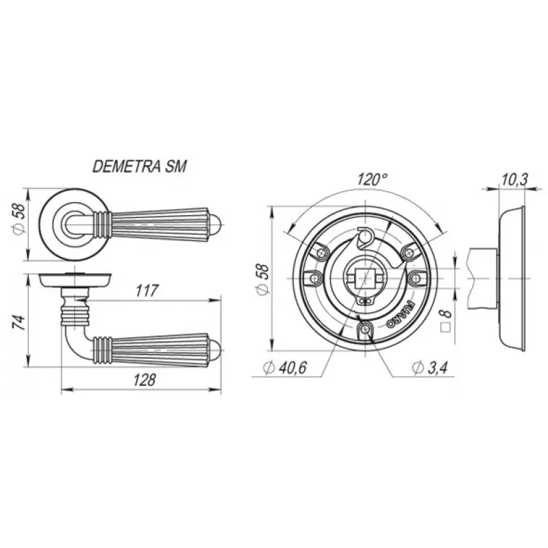 Ручка Fuaro (Фуаро) раздельная DEMETRA SM AB-7 матовая бронза