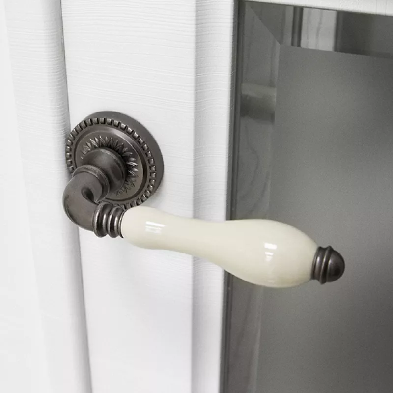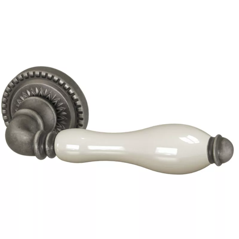 Ручка раздельная Silvia CL 1 AS/LWP-109 Античное серебро/беж фарфор. Armadillo Classic Collection погружает в мир роскоши и великолепия. Ручка идеально вписывается в классические интерьеры и, благодаря своей массивности, не теряется на, характерных для такого стиля, высоких дверях, а вставка из фарфора добавляет ей особую выразительность. Крепление TURN&SET удобно для самостоятельной установки и дает возможность замены на любую другую ручку серий Classic или Urban.